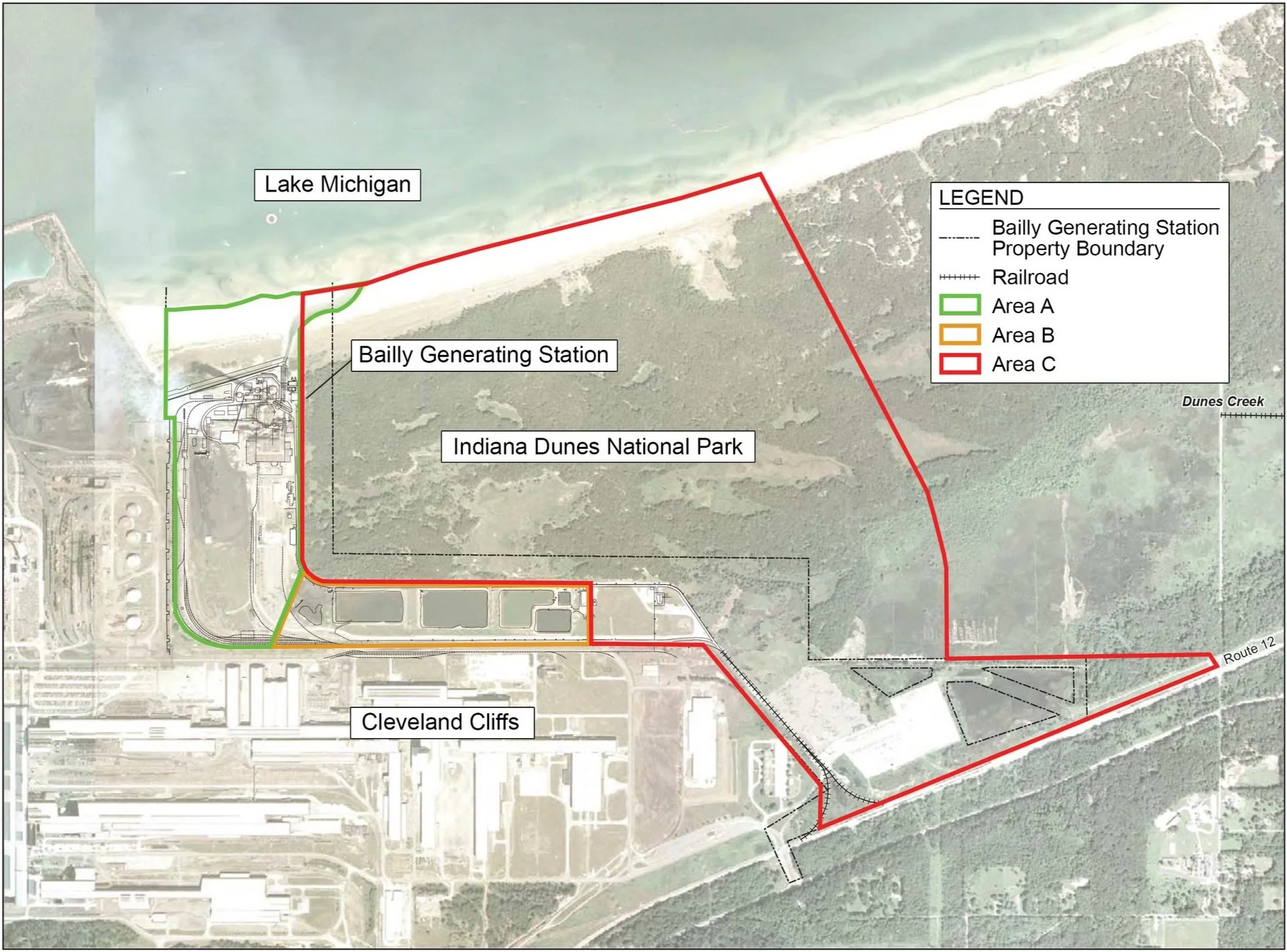 Northern portion: rail lines, the former coal pile, most of the generating station infrastructure, the Pure Air facilities, and the majority of the site’s Solid Waste Management Units (SWMUs) and Area of Concerns (AOCs)
